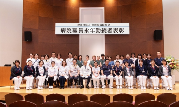 202602.19 病院職員永年勤続者表彰 法人 一般社団法人大阪府病院協会による第50回病院職員永年勤続者表彰が行われ、大阪医科薬科大学病院からは看護師、薬剤師、医療技術者など計73名が表彰されました。 この表彰は同一病院で20年以上勤務している優秀者に対し行われます。