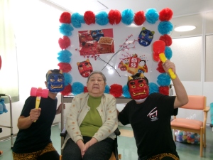 豆まきの後は、鬼さんと記念撮影が待っています。