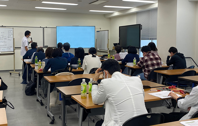 座学だけでなく、グループワークや受講者同士の相互実習を取り入れることで、多職種間の交流と相互理解を深める機会となっています。