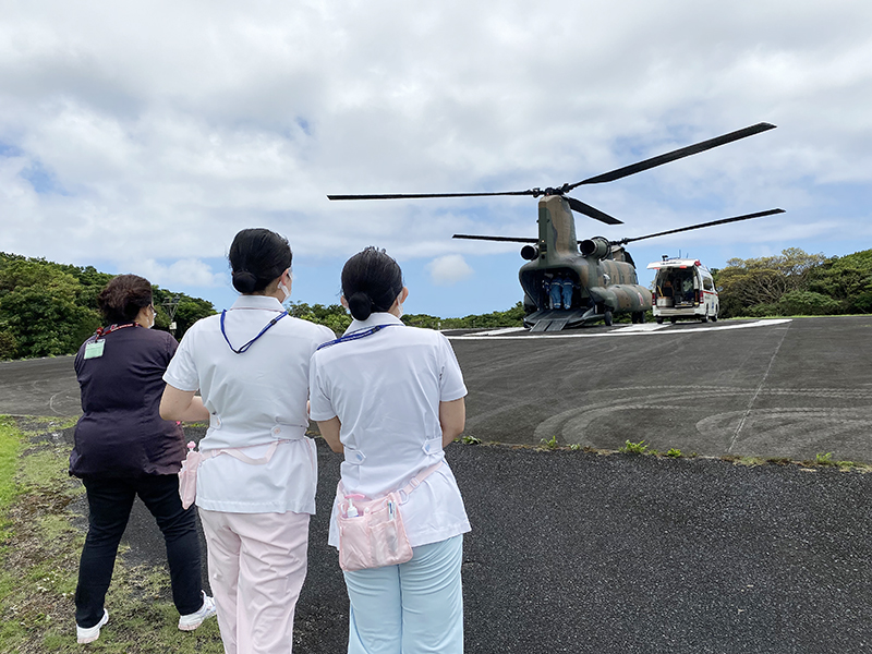 島外へ緊急搬送の様子